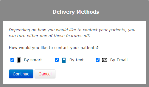 - Depending on what messaging subscriptions you have, i.e. Smart, Email, etc., select as appropriate and then click Continue: