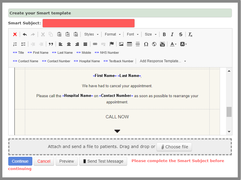 - Depending on what messaging subscriptions you have, i.e. Smart, Email, etc., edit the Smart template and then click Continue: