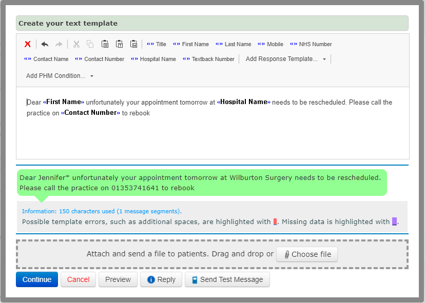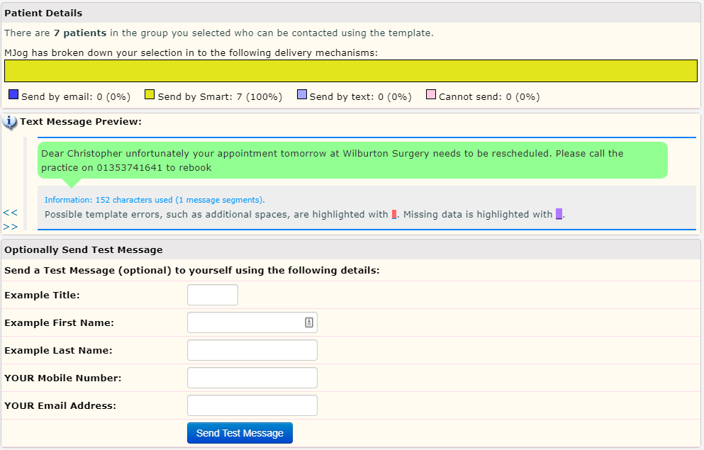 You can preview your message, and send a test message to yourself before sending it to your patients: