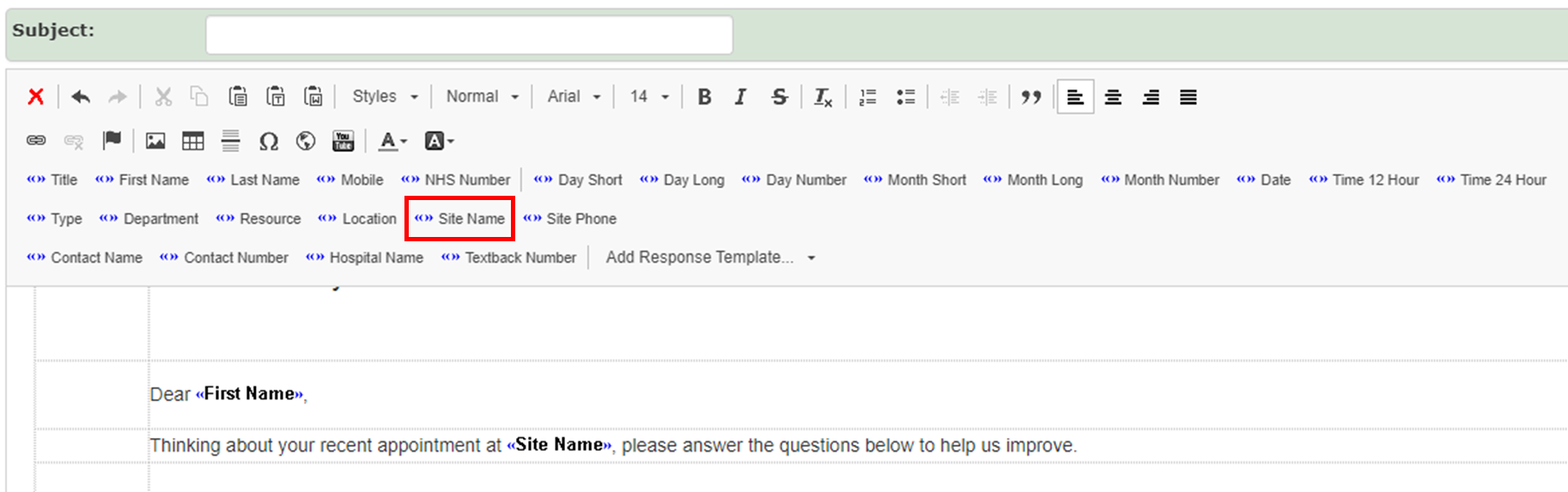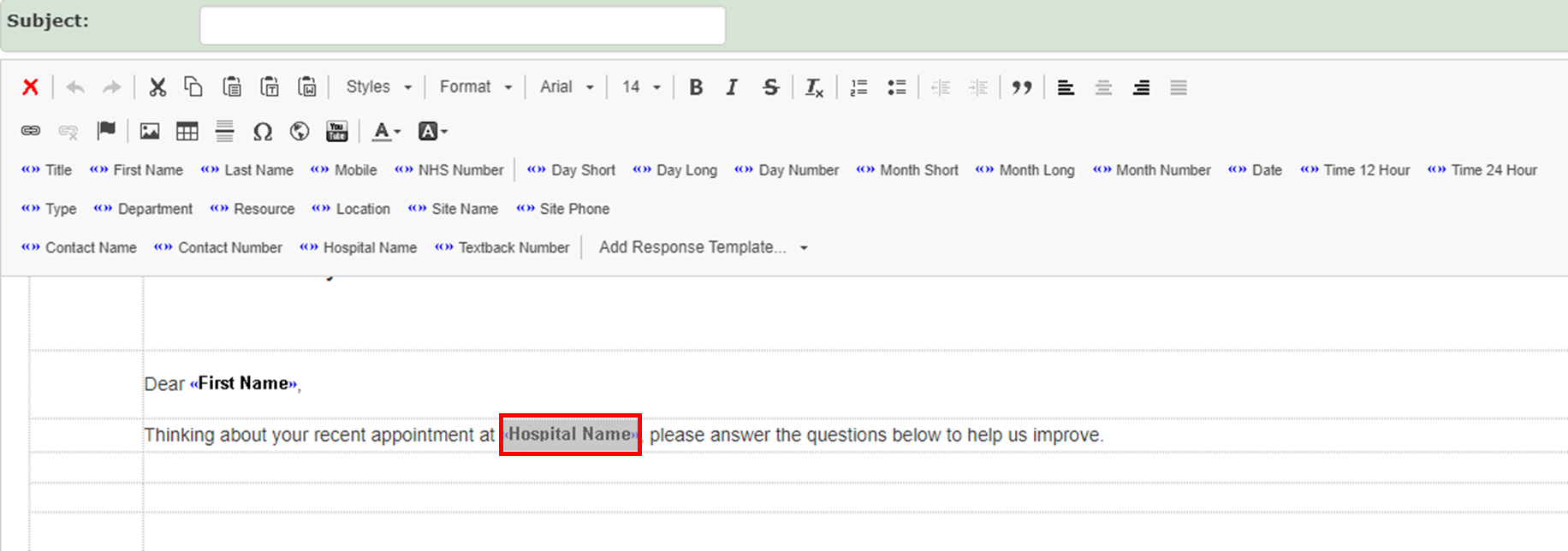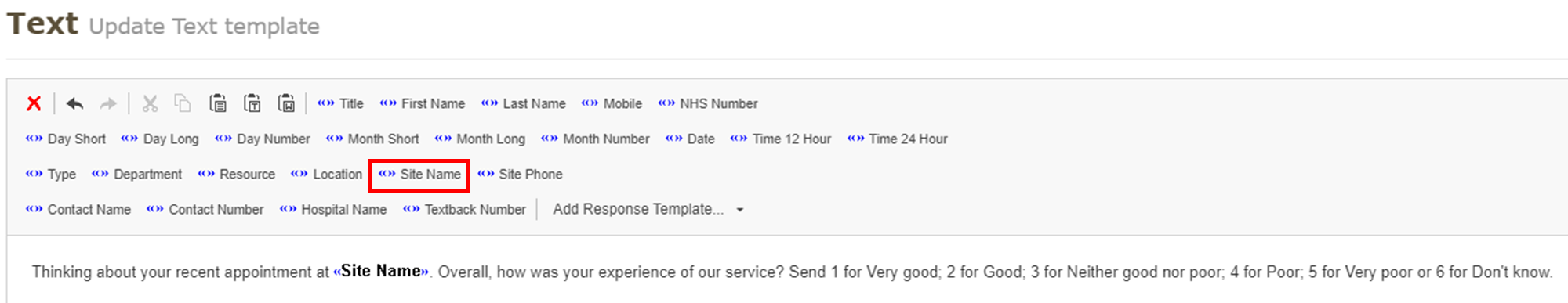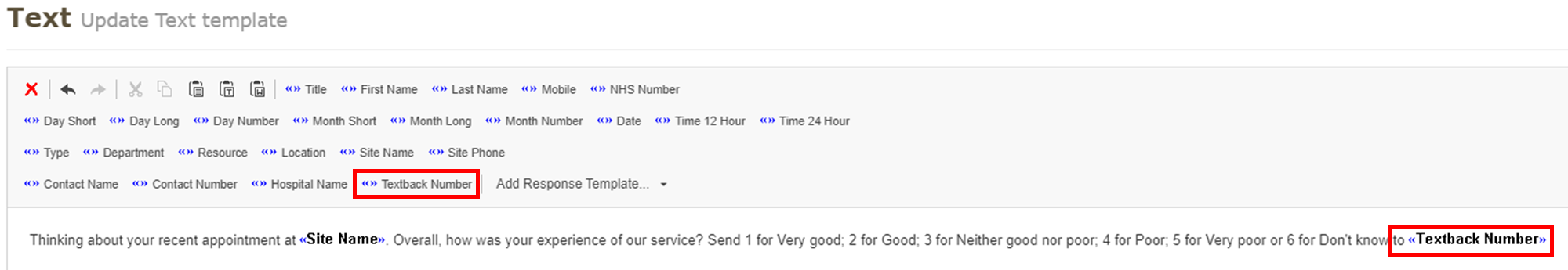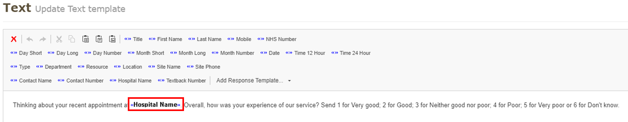 If your Mjog is configured to send SMS texts via NHS Mail, the Text template for Friends and Family will need to be edited to allow patients to reply.