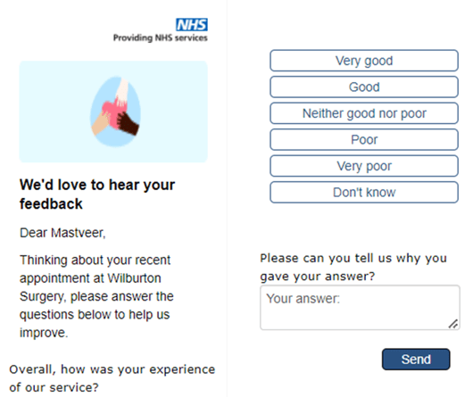 Mjog provides an automated service that allows you to text patients a copy of the FFT questionnaire after they have attended their appointment. The intended benefit of automatically texting patients the Friends and Family Questionnaire, is that you are guaranteed to reach 100% of your patients to gather their feedback; texting patients is a more direct approach to receiving feedback (as opposed to them filling in cards or using touch screens in your surgery’s reception).