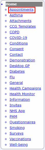 - Click the Appointments category:
