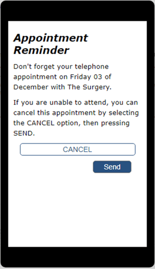 Creating custom appointment reminder messages for slot types allows you to send specific appointment reminders for slot types such as Telephone Consultations, which helps to prevent patients attending your surgery when they don't need to.