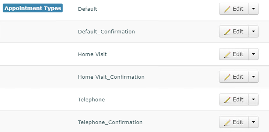 - Locate the appointment type template: