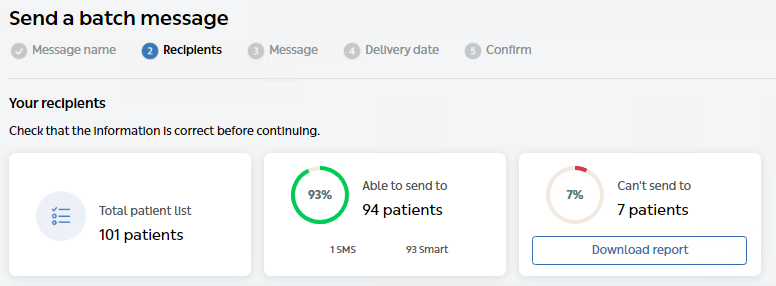 When you sent a batch message to your patients, it is likely that you may not have mobile numbers for all of your patients. Another possibility for messages not delivering is due to no longer used numbers, patients out of credit, poor signal, etc.