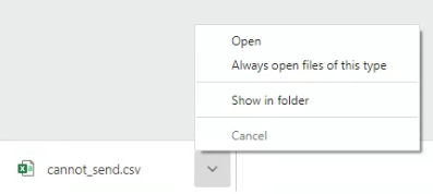 - Click Open to view the CSV file in Excel: