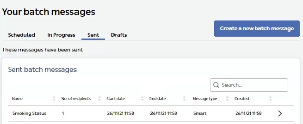 - Select the Sent tab, and then click on the batch message: