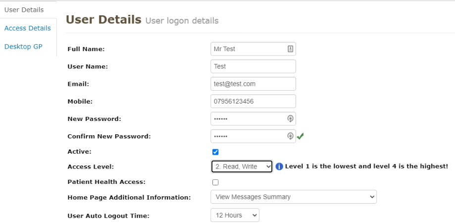 Active | If checked, the account can be used to access Mjog. If unchecked, the account is not currently in use. This may be useful for staff that are on long term leave or if you need to temporarily suspend a user from accessing Mjog. |